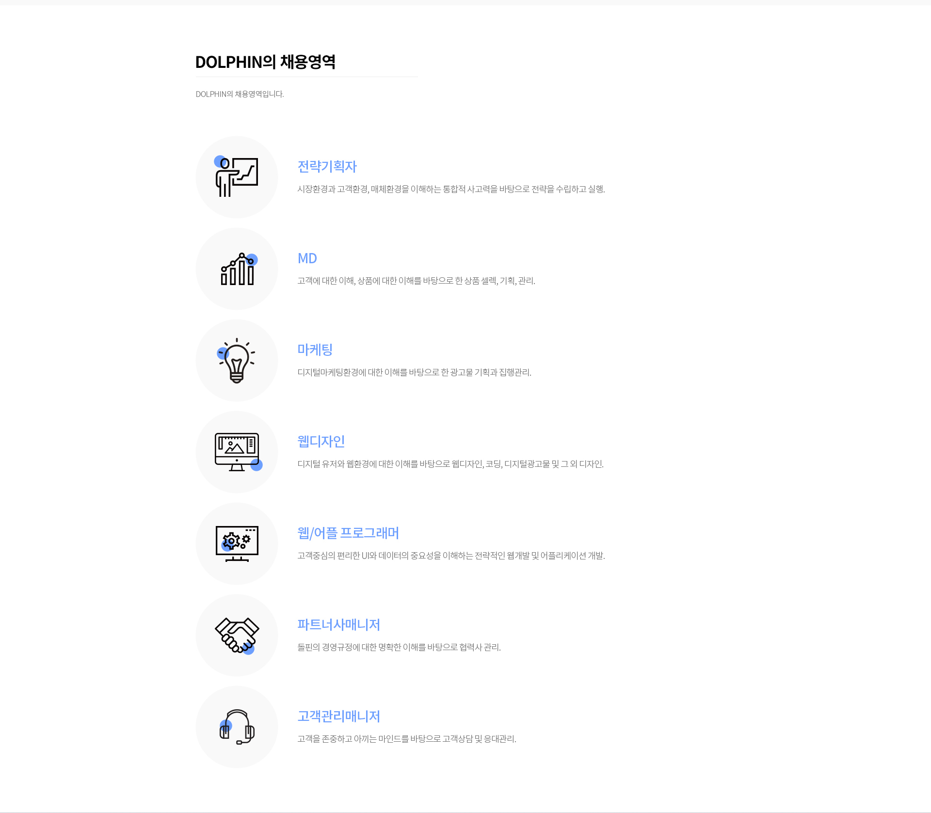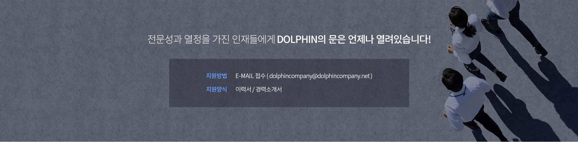돌핀은 도전정신과 전문성을 갖춘 인재를 지향합니다.